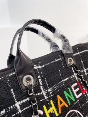 Chanel Rainbow Black Tweed Deauville Tote Black
