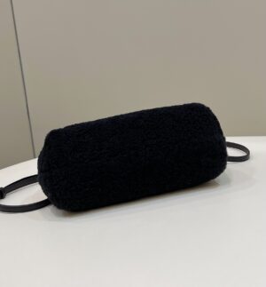 Small Fendi First bag made of soft, pale black mink with oversized metal F clasp bound in tone on tone nappa leather.