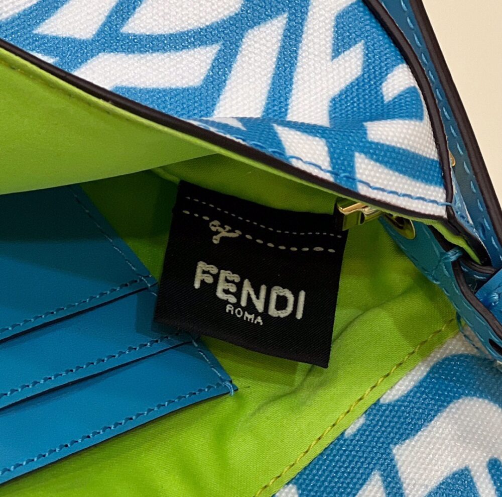 This style is a re-release of the first Fendi Baguette bag created in 1997, from which it takes its name and iconic “under the arm” design.
