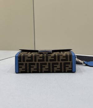 The fabric cross-body shoulder strap with FENDI lettering is adjustable and detachable