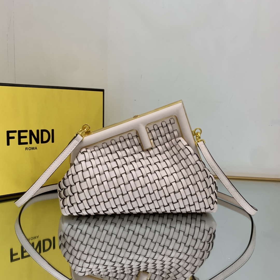 Fendi First bag in the perfect size for daytime, made of exquisite with oversized metal F clasp bound in tone on tone .