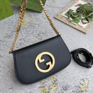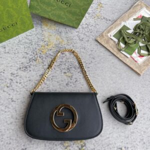 Vintage elements are paired with archival details as an ode to the glamour that permeated the Gucci Love Parade fashion show. This shoulder bag pairs a delicate chain strap with black leather to infuse the accessory with a timeless feel. Reintroduced in honour of the collection, the rounded silhouette is completed by a historical, rounded iteration of Guccio Gucci’s monogram.