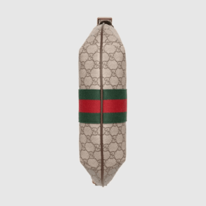 A classic combination of the House’s most recognizable elements—the GG motif and Web stripe—the world of Ophidia continues to evolve, incorporating new shapes and silhouettes. The half-moon design mixes emblematic references with the unique charms of the crossbody bag, a popular Gucci model since the late ’50s. Crafted in GG Supreme canvas, it’s trimmed with textured leather and topped with Double G hardware.