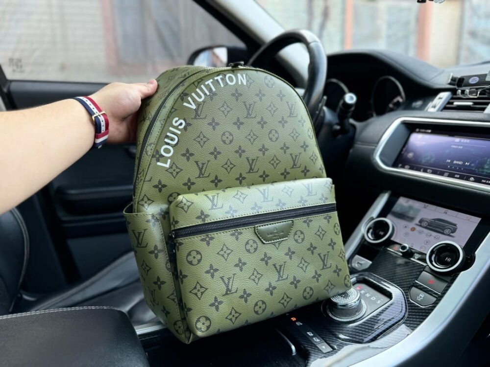 The Discovery Backpack PM is made from Monogram coated canvas in an earthy colorway. It’s signed “Louis Vuitton” on the front in bold white type and features a removable name tag. The roomy front pocket, two inside pockets, and inside iPad pocket make it a great everyday bag.