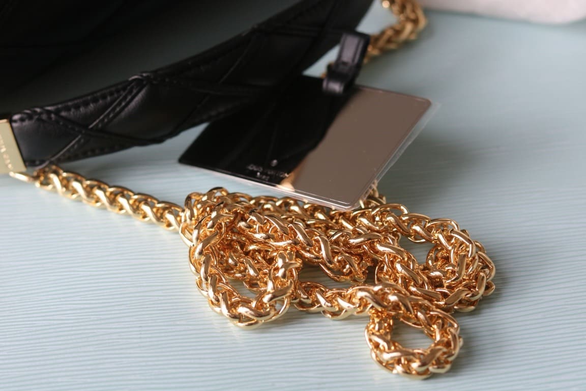 Fashioned from soft, luxurious lambskin, the GO-14 MM bag features the signature quilted pattern designed for the Maison’s historic trunks. Accented with a gleaming golden LV Twist lock, this versatile model can be carried by the top handle or worn on its sliding chain. Alternately, the top handle can also be converted into a leather pad on the chain for a comfortable shoulder or crossbody carry.