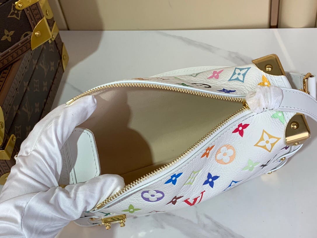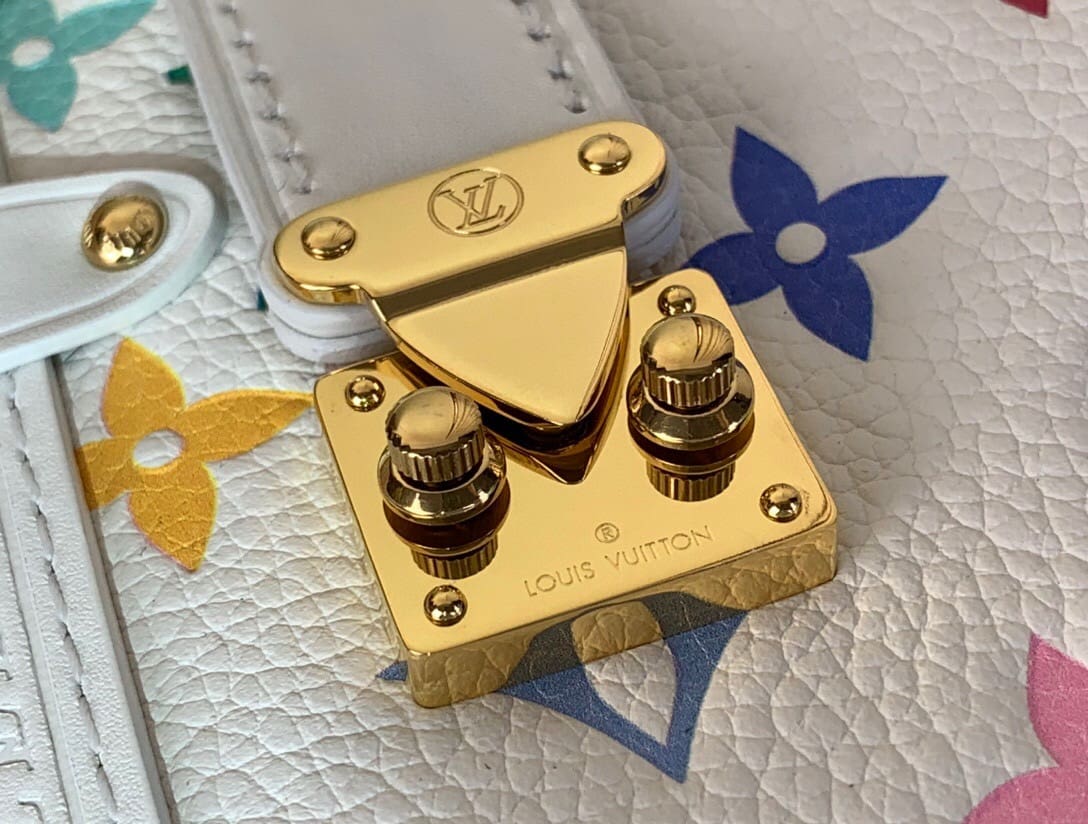 The iconic Side Trunk MM makes a spirited everyday statement in a playful version of the Monogram motif from the re-edition of the Louis Vuitton x Murakami collection. Crafted from supple cowhide, the rectangular silhouette pays homage to the House’s archival luggage complete with golden reinforced corners and an emblematic S-lock closure. The removable handle embellished with studs and strap offer versatile carry options, while the inside is large enough to stow daily essentials.