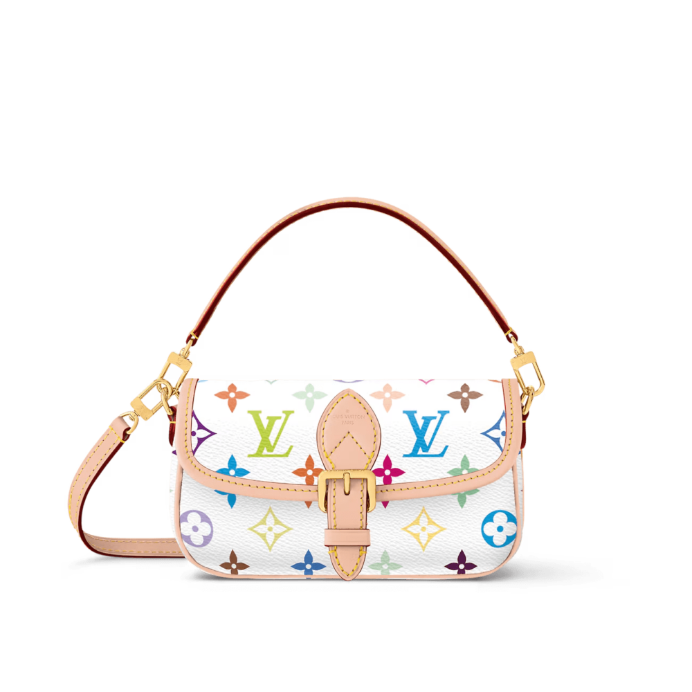 This Nano Diane handbag is from the Louis Vuitton x Takashi Murakami collaboration series, and it releases fun with colorful Monogram patterns. The dazzling metal parts and cowhide trims highlight the classic style, the detachable and adjustable leather shoulder strap is convenient for crossbody, and the exquisite configuration can store mobile phones, short wallets and other daily necessities.