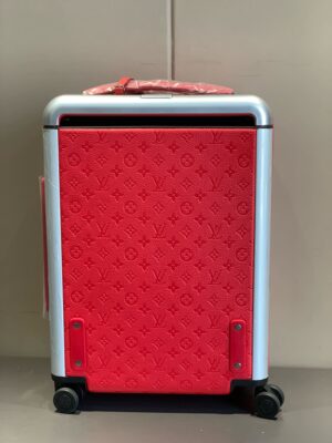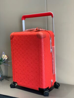 This season, our classic rolling suitcase, the Horizon 55, comes in vividly colored Taurillon leather, embossed with the Monogram motif. Sized to be used as carry-on baggage, it is surprisingly spacious thanks to a wide external cane that means that its interior is completely flat. The four compact wheels make it easy to roll.