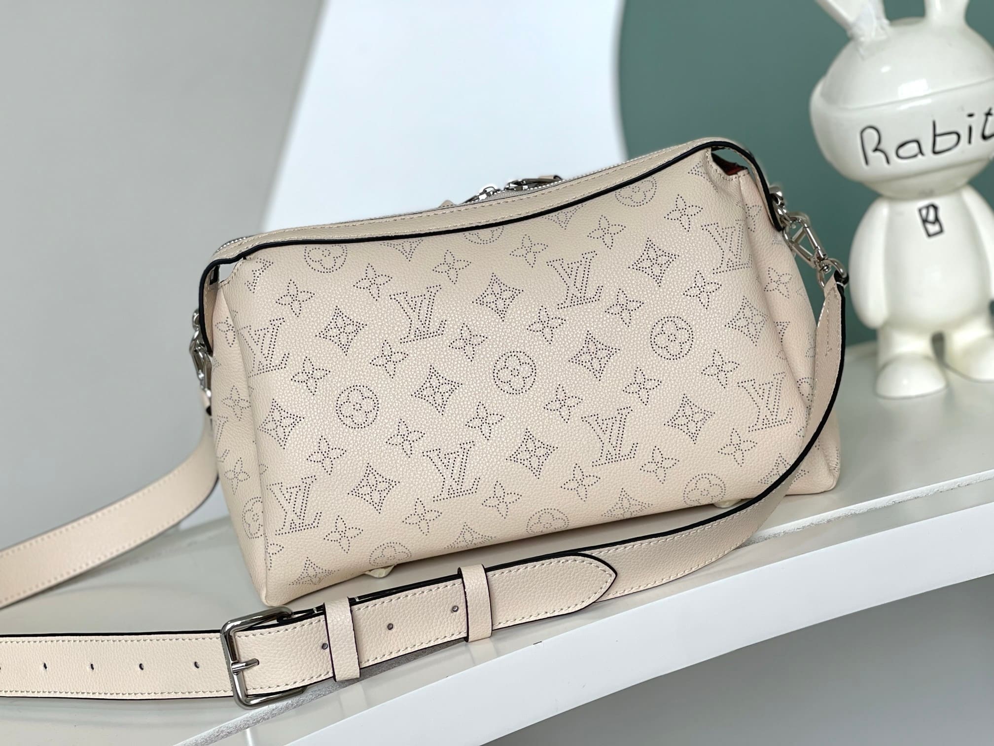 This small Mahina Hand It All bag is made of fine perforated cowhide leather, with an elegant draped texture that highlights the chic silhouette. The leather shoulder strap and chain and leather braided handles are both detachable, providing a trendy choice for daily travel.