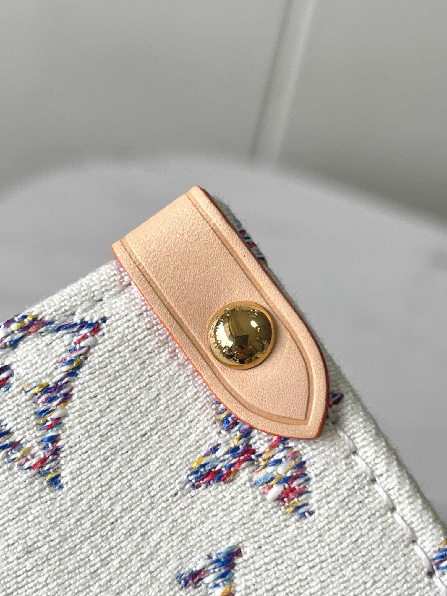 Part of the Nautical capsule, this OnTheGo MM is made from Monogram jacquard fabric, created with 66 different colored threads for a Monogram with a soft gradient of color. To ensure durability, the fabric is treated with an invisible protective coating. Each model comes with a laser-engraved mirror charm for on-the-go touch-ups.