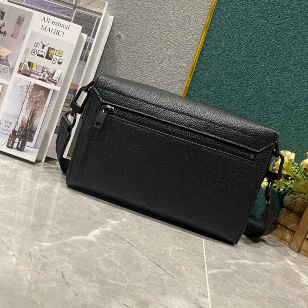 Made from cowhide leather, this small Takeoff messenger bag features a blunt-angle flap and LV logo, a signature element of the LV Aerogram collection. The close-fitting shape and wide detachable shoulder strap make it a great choice for everyday travel.