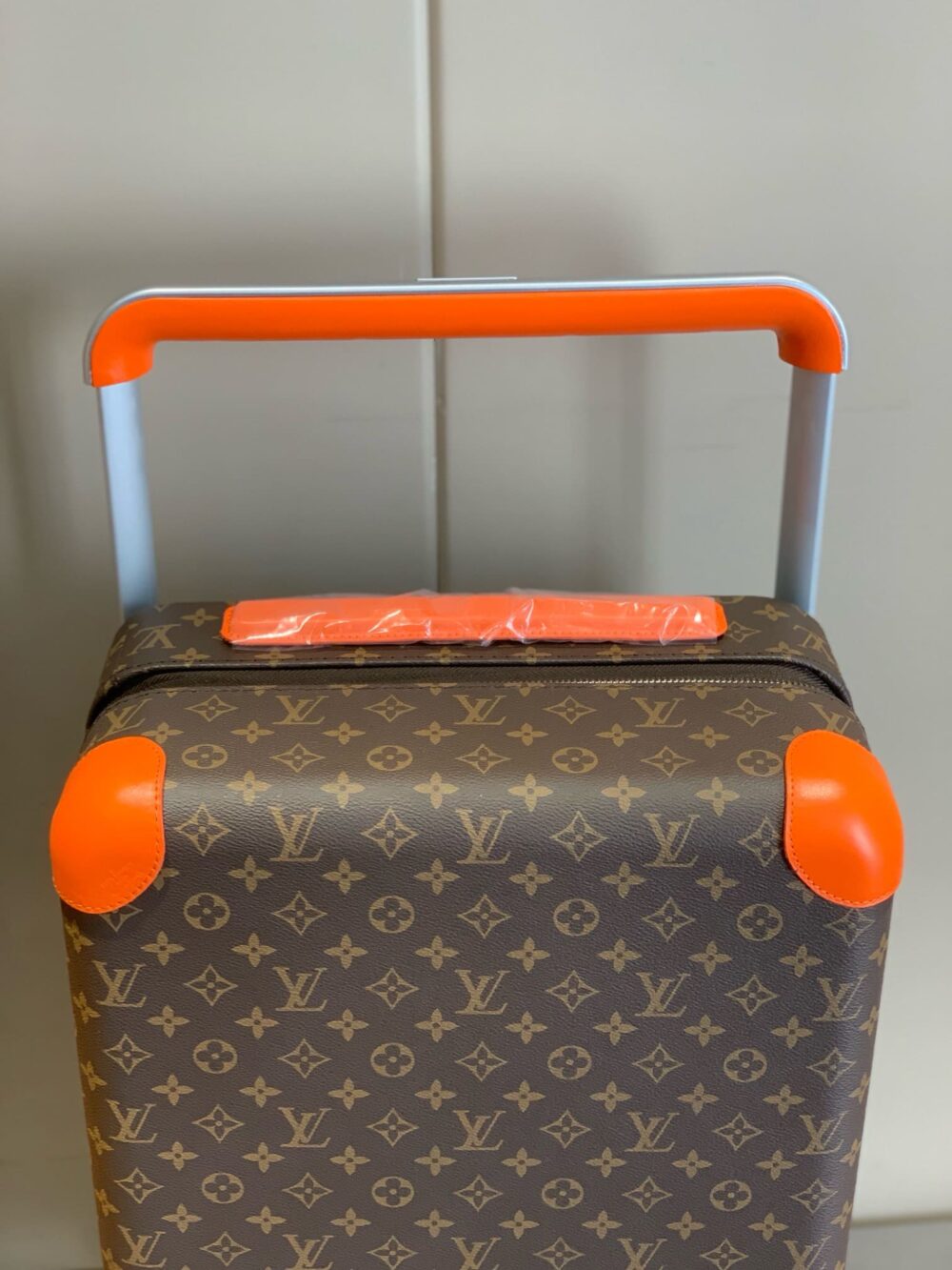 The perfect combination of tradition and modernity, the Horizon 55 rolling suitcase is made from iconic Monogram Macassar canvas with bright-colored leather trim, including on the reinforced corners and top handle. The bag’s unexpectedly spacious interior is lined in matching-colored textile. This case can be used as carry-on baggage.
