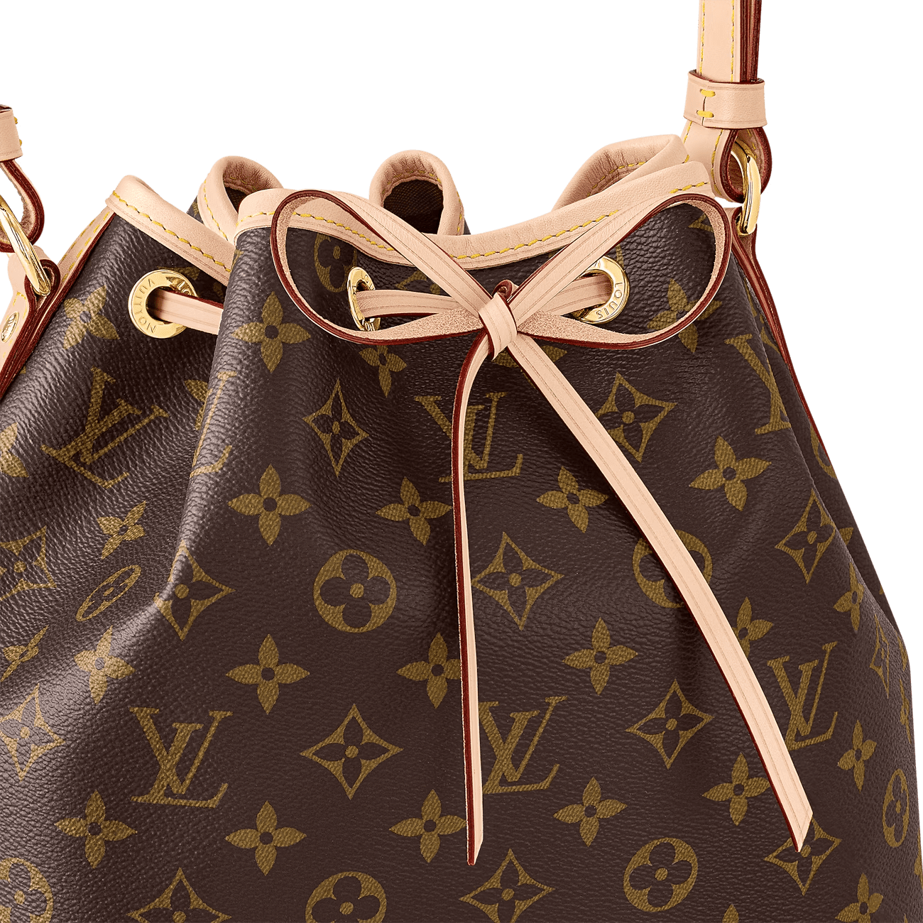 The Petit Noé bucket bag harks back to a design from 1932. A Champagne producer asked Gaston-Louis Vuitton to develop a sturdy, stylish bag in which he could transport five bottles of bubbly. This compact version in body-friendly Monogram canvas retains key features of the original – the iconic shape, generous capacity, drawstring closure – but is made for modern life. The leather strap adjusts for comfortable shoulder or cross-body wear.