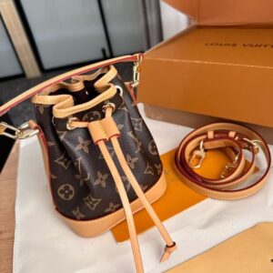 The Nano Noé is a miniature version of the iconic Noé bag, created in 1932. Crafted from Monogram canvas with trim in natural cowhide leather, this tiny Nano Noé combines heritage with modern functionality. Its removable handle and removable, adjustable strap offer multiple carry options, while it is spacious enough to hold essentials including keys, a card holder and a smartphone.