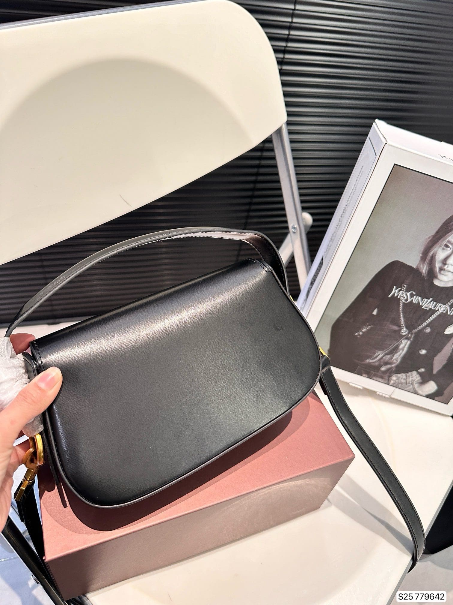 THIS ELEGANT AND MODERN BAG FEATURES A FLAP WITH MAGNETIC CASSANDRE HINGE CLOSURE