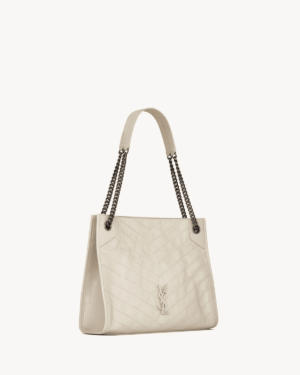 SHOPPING BAG IN VINTAGE CALF LEATHER, FEATURING CHEVRON QUILT OVERSTITCHING AND LEATHER-ENCASED CASSANDRE.